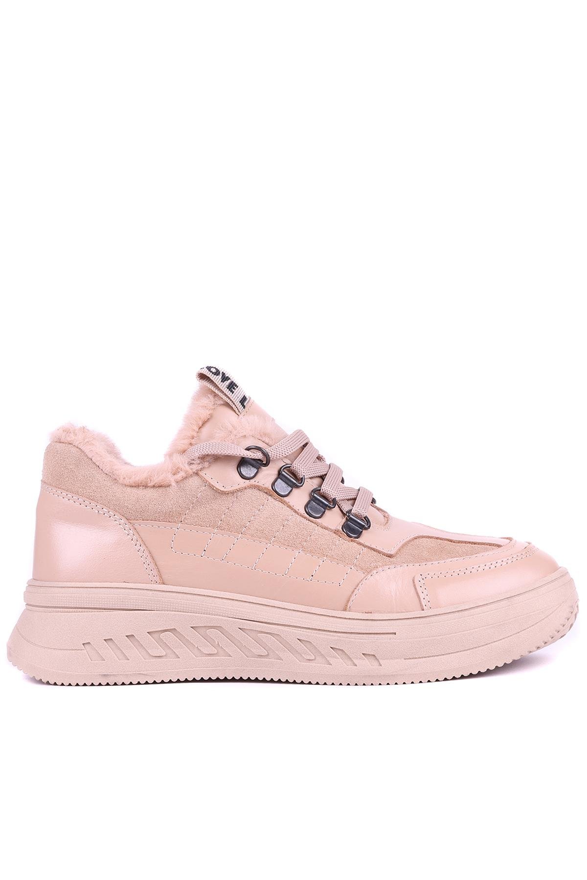 Shoetyle - Hakiki Deri Bej Rengi Kürklü Kadın Bot - 25102202 (M.K.01.22K.00036|931)